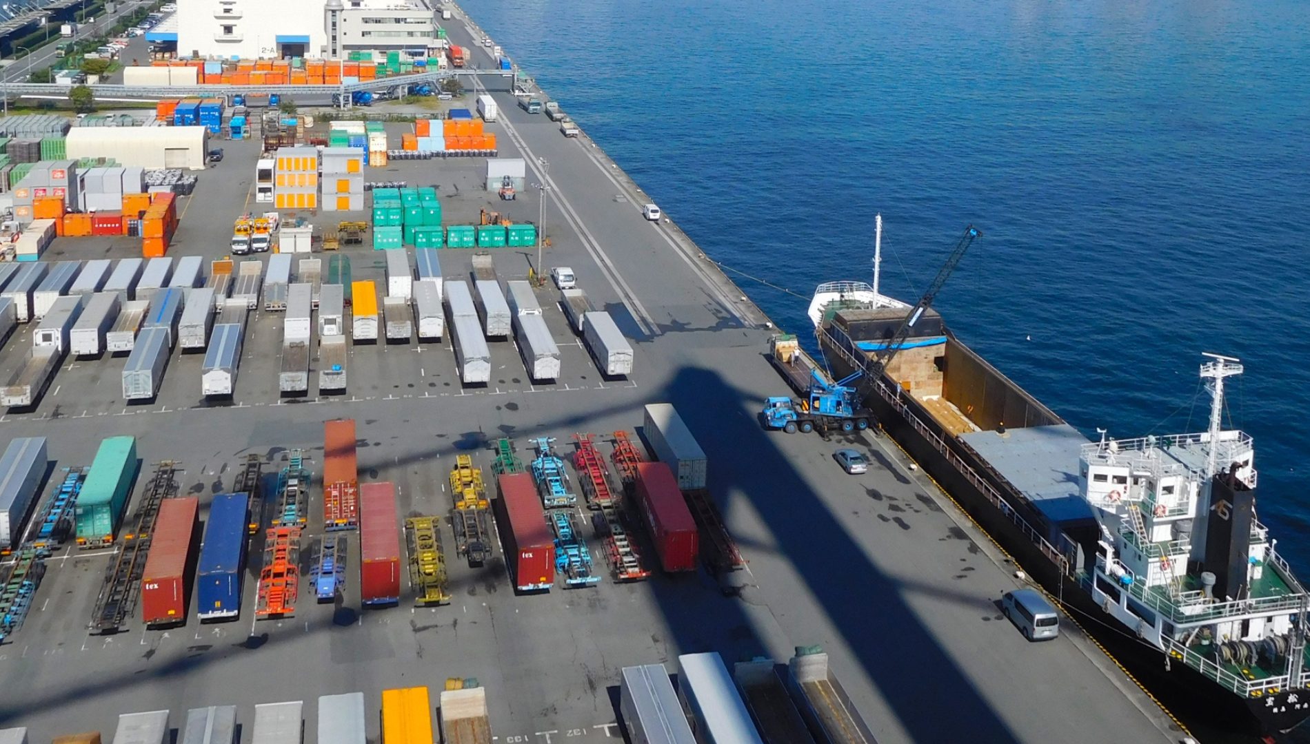 船舶を利用することで、少ない労働力での大量輸送が可能になります。また、トラックでの輸送距離が減り二酸化炭素の排出削減に繋がります。